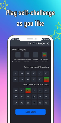 - Through self-challenge you can select your best category then select numbers of questions then select time period in minutes for online quiz win money.