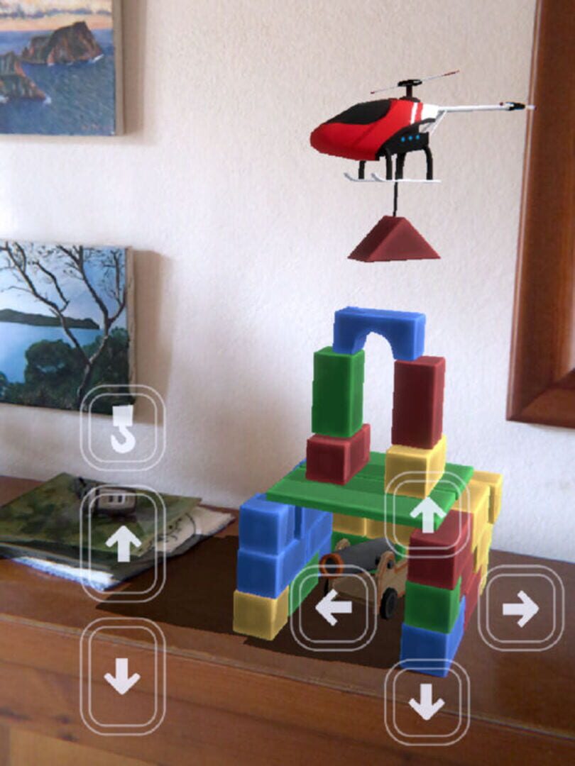 The possibilities are endless in Playground AR! Take on the challenge of building an impressive block castle, and try to land on top of it with your RC helicopter - it's never been easier with the game's intuitive controls. Plus, this sandbox title lets you team up with friends and compete to see who can buil