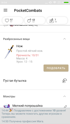 Pocket Combats RPG — это многопользовательская хардкорная гриндилка в жанре текстовых РПГ.