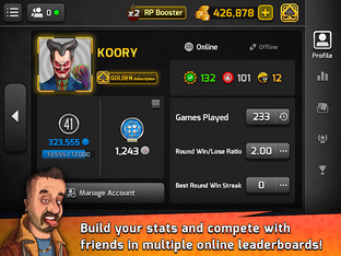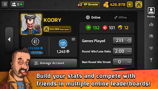 - Track your progress in Pocket Tarneeb through the Profile menu