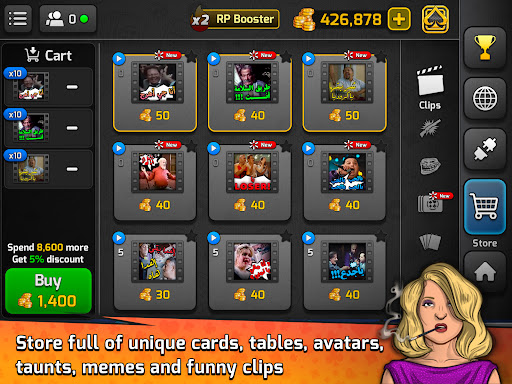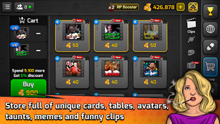 - Buy and collect a variety of creative card decks and backgrounds from the in-game store