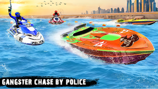 It's time for police jetski to chase the fearless gangster escaping on boat and jet ski in the ultimate waves and challenging opponents in massive police boat racing and smashing police chase boat racing game. Off course this game combines excellent visuals and sound with stunning game play, making it a unique cop chase boats stunts game with ultimate racing experience. This fearless power boat racer is a combo pack of thrilling visuals, wild stunts and intense challenge, so you will have to use your pro driving skills while playing this fearless boat jetski shooting game. As you proceed in the game, you will have to experience sharp turns at intense speeds on waves, you will find yourself struggling to retain control over the speedy boat and shooting the gangsters, reach the finish line in least possible time.
