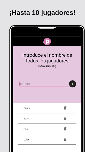 2- Introduce el nombre de todos los jugadores en la pantalla correspondiente– de 2 hasta 10 personas pueden participar