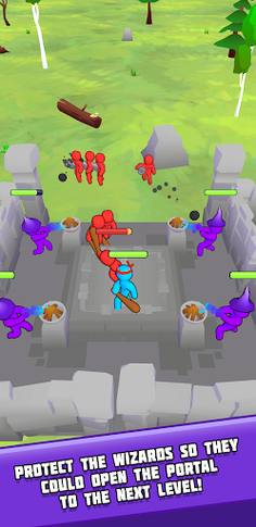 Fight all the enemies and build the base, fill it with traps to survive and defend the wizards who help you to activate the portal to the next level. Purchase multiple weapons and upgrade them to increase your chance of survival and win against final bosses. Increase your level with every bought upgrade and finished level!
