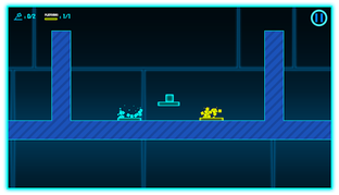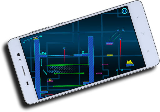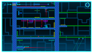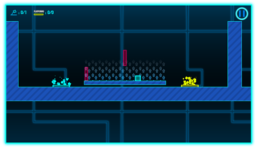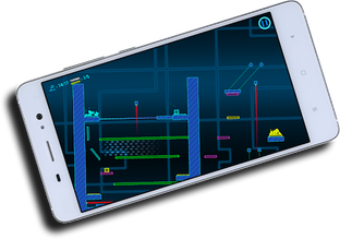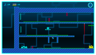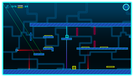 There are a lot of objects in the game world: sliding platforms, lasers, bounces platforms, zones with gravity, portals and much more.