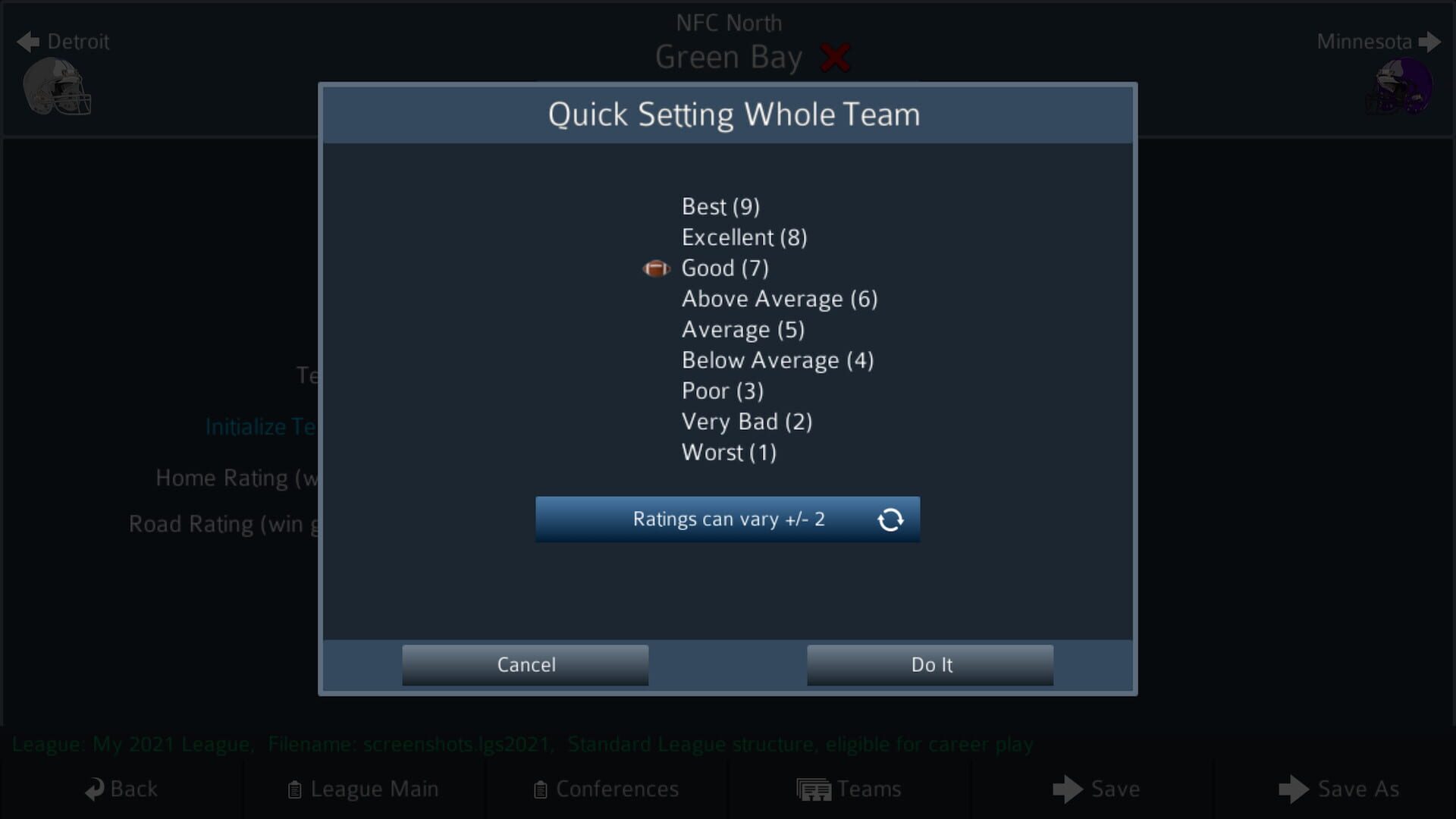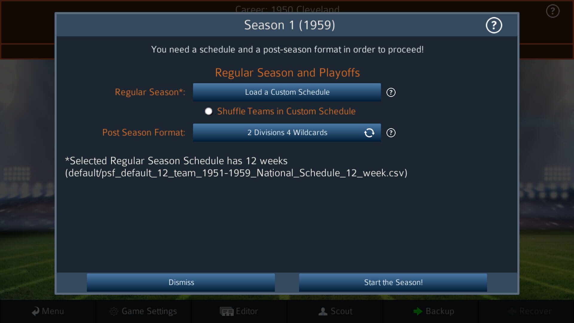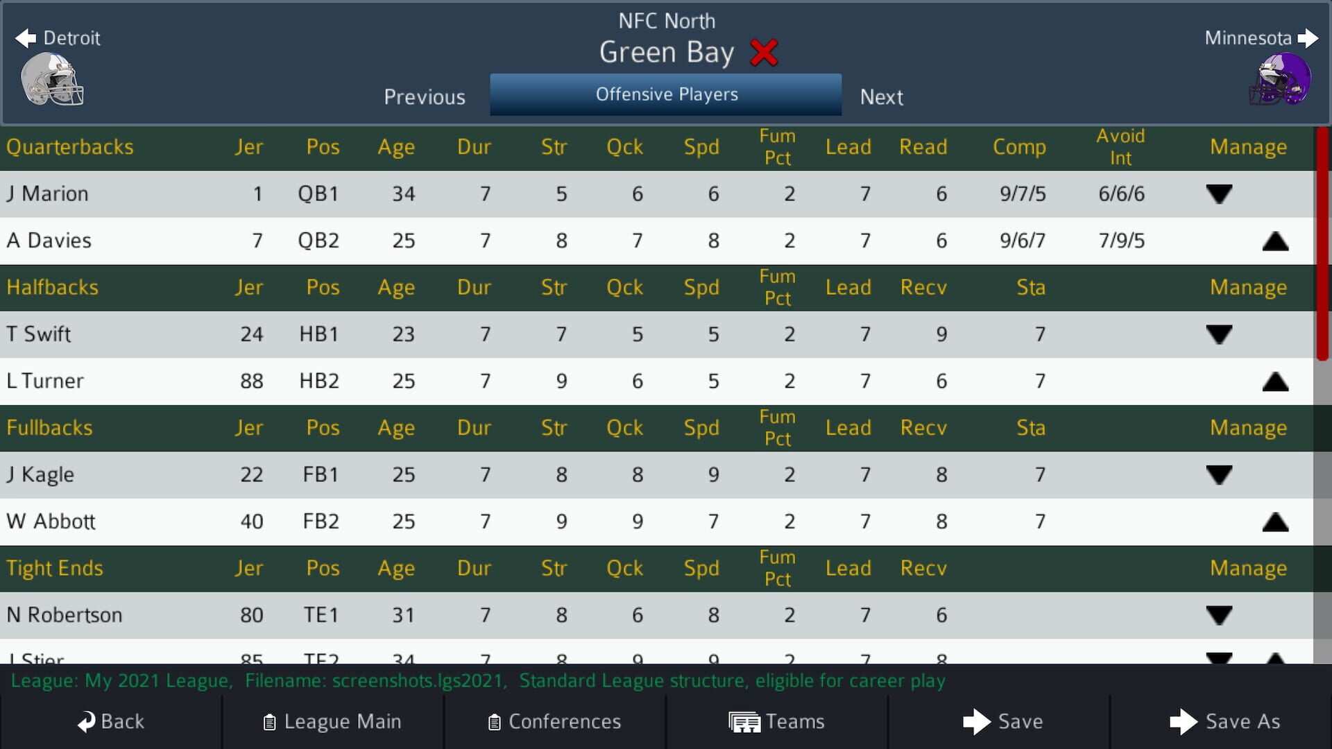 The game includes a Pro 2021 league and a starter college league with 130 teams, and over thirty schedules (as csv files) from which to choose. Modders are already creating more leagues, image sets, sounds, and schedules, so you can play any real season or create your own dream matchups.