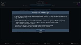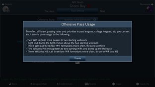 The revamped simulation engine is incredibly accurate, producing realistic results every time. Players will enjoy the added realism of new "Run Usage" and "Pass Usage" options, which give teams their unique style and personality. Whether you're playing with a tight end-oriented passing attack team, a run and shoot team, or a grinding team from the 50s, the gaming experience remains authentic.