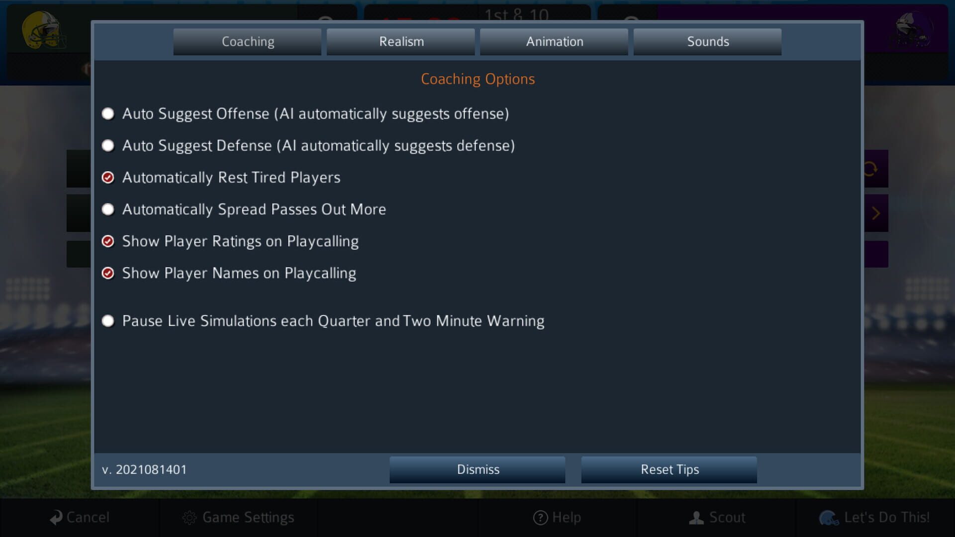 You can customize every league's sounds, images, and rules, including quick sets that replicate rules from the 1940s to the present day. You can also enjoy a Canadian feel by playing with three downs! PSF 2021 offers new animation options for customizing the game to your liking, including the ability to play any song as your background music.