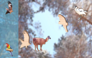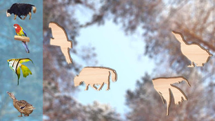 - 43 different animals, birds and fishs: bear, fox, horse, tiger, wolf, parrot, lion, snake, dog, cat, squirrel, monkey, duck, turtle and many other.