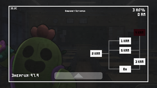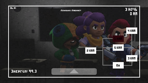 The player controls a night guard working at a school with animatronics from the game "Brawl Stars", who must survive his shift, which lasts from 12 am to 6 am.