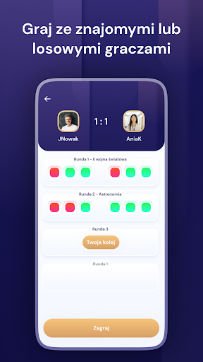 The originator of the project is Łukasz - the creator of KiKŚ. Our original database, which is constantly growing, contains over 52,000 questions from several categories. The main game is divided into short seasons. After completing each of them, the top of the ranking wins attractive prizes. The application also gives you the opportunity to socialize with your friends.