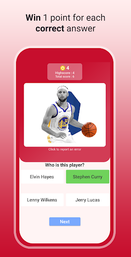 There is a ranking for who knows the basketball players best. The best score during a quiz session is saved, and you can compare it with players around the world.
