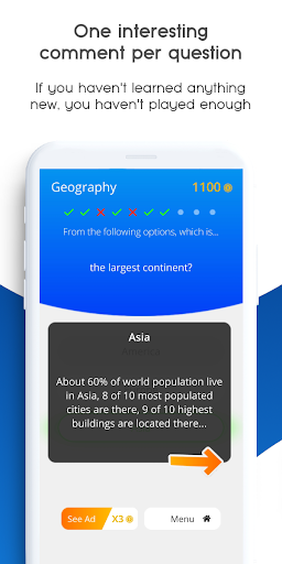 This game is much more than a trivia game, every question has a comment or fact that will surprise you, will help you expand your knowledge and will amaze your family and friends.