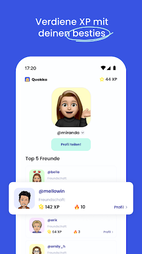 Gewinnen ist cool - im Grunde geht es aber um Spaß beim Spielen, mit Freunden in Kontakt bleiben, und vllt sogar was zu lernen. Deswegen sammeln beide Spieler XP für die Freundschaft. Je länger ihr miteinander spielt, desto mehr XP. Auf deinem Profil werden dann deine Top Freundschaften angezeigt. Wundervoll!!1!