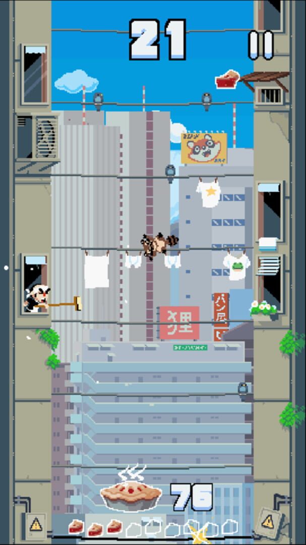Welcome to a thrilling and addictive one-button adventure game, where you can step into the shoes of a greedy raccoon and embark on a quest to scale buildings, while gobbling up delicious pies along the way. And that's not all, as this game has a lot more to offer!