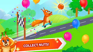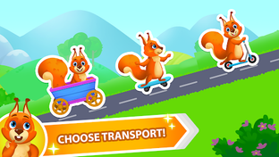 At the beginning of the race your kid has to choose a transport for the Squirrel-rider. The kick scooter is available by default yet if little kids wish to upgrade to a longboard or a wagon, they can pay for it with golden hazelnuts. The good news is, golden hazelnuts are easy to get - they can be earned by visiting the game regularly or completing levels, so your child can enjoy the game without breaking the bank!