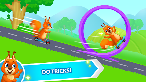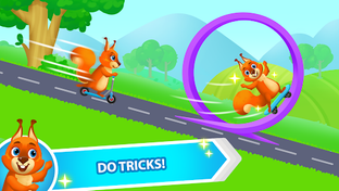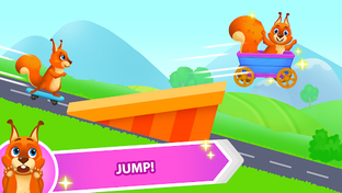 Your child will have a funny time tapping on the screen to make her zoom through the lanes and meadows, up and down the hills, and smashing obstacles like a pro. Watch her soar to new heights with speed boosts from running over speed arrows on the road. And, let's not forget the special tunnels where the Squirrel turns somersaults with ease!