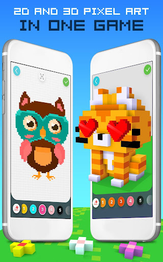 Are you ready for a double dose of pixel art? Rainbow Color by Number offers you the chance to color both 2D and 3D images in one game! Dive into an infinite number of pixels and transform them into breathtaking moving 3D images or beautiful 2D creations. Give color life and use your imagination to create pixel masterpieces that can be observed from all angles. The original music soundtrack will immerse you in the relaxing coloring by number experience.