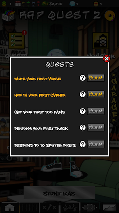 Rap Quest 2 is a Hip-Hop Simulation Game that puts you in the shoes of an upstart rapper. Build your career through mini-games representing the different aspects of what it means to be a MC.