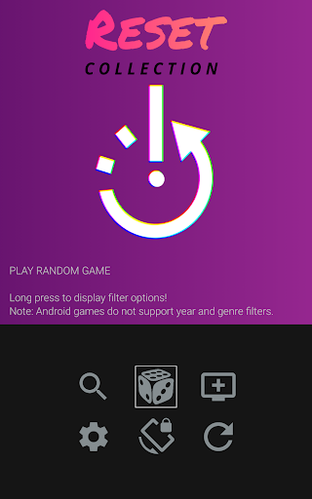 Don't know what game to play? Let RESET handle it for you with the PLAY RANDOM GAME option! You can even filter the random games by system, date, genre, and title keyword!