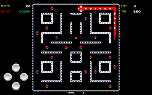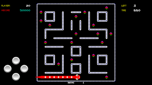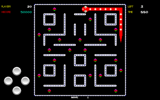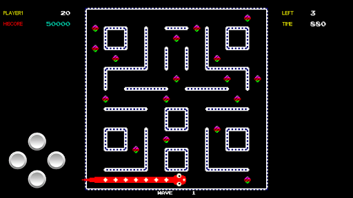before the time runs out "End Game", this sounds easy until you find out that once you eat a pill your body starts to extend, don't run into your body or you lose a life.