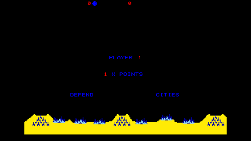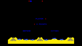 You the player "the commander" have been gifed 6 shiny new cities to defend, against an attacking hord of ballistic missles, smart bombs, planes and satellies which fly across the screen