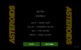 You control a spaceship "The trianglular object" in an asteroid field, if that was no enough and to make matter a little worse some flying saurcers are thrown in for good measure, your job is to blast the hell