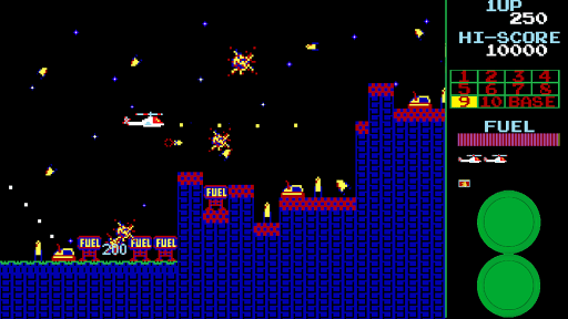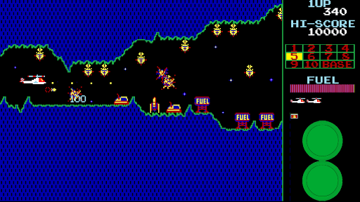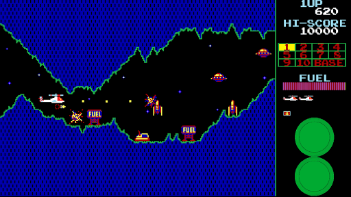 Get ready to pilot your chopper through 11 levels in this horizontal shooter arcade game, taking on missiles, armored vehicles, unidentified flying objects, and a relentless comet! Regarded as one of the top games from the 1980s arcade era.