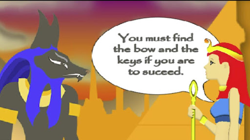 Players are encouraged to explore different areas by using their skills such as double jumping, climbing, and sliding. Players can also interact with scrolls and the Goddess to collect hints on how to locate missing items. To progress through the game, players must unlock doors using corresponding color keys. However, the land is full of scorpions and mummies that players must outsmart by luring them into a spike trap or using the bow or magic potion to defeat them.