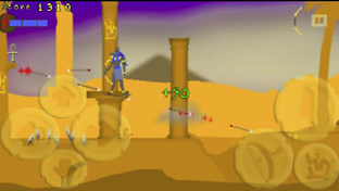 In Revenge of Anubis, players can destroy almost everything, including falling spike traps, wooden doors, pottery, and all enemies, including the Bowman's arrow. Using the bow, ricochet shots are worth more points when players calculate how to bounce them off walls to hit specific targets. Players can also use the ricochet shot to get behind the Bowman's shield and defeat him.