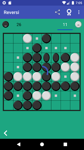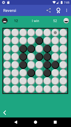 ♦ Game engine performs multiple moves in case you have no valid place to go, due to the well known rule "If one player can not make a valid move, play passes back to the other player".