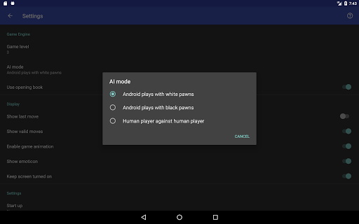 ♦ Show/hide last move, show/hide valid moves, show/hide game animations