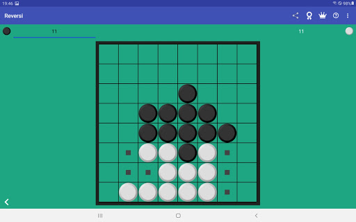IMPORTANT NOTICE FOR BEGINNERS: our game performs multiple moves, as any similar application, only in case you cannot move as you don't have any valid place to go, i.e. when you have to pass your turn according to well known game rule "If one player can not make a valid move, play passes back to the other player".