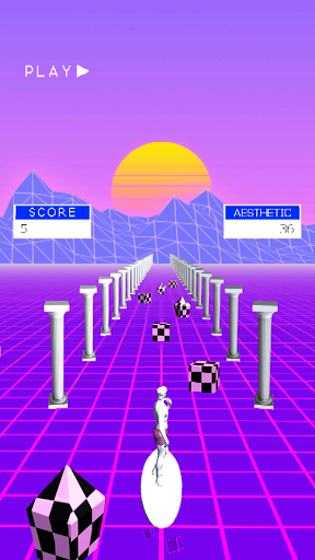 Play with a raw Aesthetic theme as you let the Vaporwave (or Vapourwave) overtake you. Relax and then fret as the difficulty gets progressively harder throughout the game, how long can you go for? Let Nostalgia in as you relive the good old days with wire-frame meshes, checker patterns and a windows 95/windows 98 inspired theme.
