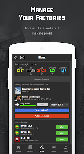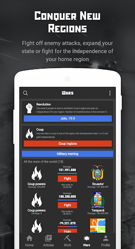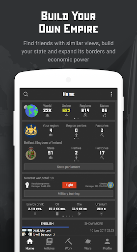 But it's not all about physical warfare. Use your intellect to create your very own newspaper and publish articles to sway public opinion. The game is built on real-world regions, giving players the ability to form their own state with unique forms of government. Will you choose a dictatorship or a presidential republic? The choice is in your hands.