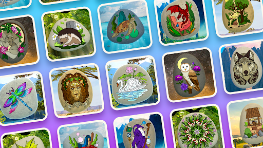 Relax your mind, relieve your stress and anxiety, express your inner artist and unleash your creativity and imagination by engaging in this new form of anti-stress meditative DIY art therapy and stress-relief coloring on your mobile device. Feel your anxiety disappear with every color you add, with every new illustration you paint and every new rock painting artwork you add to your painted rock collection. Experience the ASMR sensations of different textures, different drawings, different colors and showcase your artistic talent and creativity by sharing your painted stone artworks with your friends and loved ones.