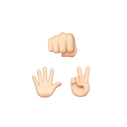 The game is typically played by two individuals who each simultaneously form one of three shapes with an outstretched hand.