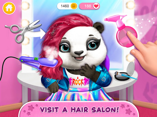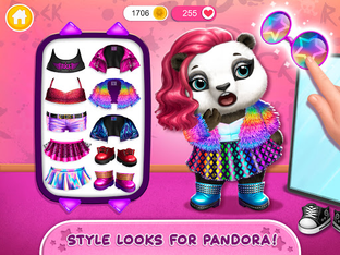 Meet the band and your new Animal Hair Salon clients, including the chic and rainbow-haired leopard girl Amy, crazy cute and talented guitar girl Panda Pandora, drum-playing and tattoo-loving Pomeranian puppy Pepper, and giraffe Rachel, who needs her day spa treatments and a new punk outfit. The rock star beauty salon fun is about to begin, so don't keep them waiting!