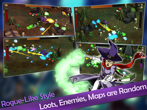 Procedurally generated items, unique enemies, and elemental damage in Spellslinger. Equip spells and gear to defend your village and loot for gold.