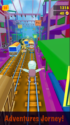 Swipe to turn, jump and slide to avoid hitting obstacles, barrier buses and trains. Have exciting run on Bus 3D, collect coins and buy power up. Unlock new characters, and see how far you can run! Underground city adventure travel along the tracks start now,surf with your friends. Run like hell and challenge your limit. Run - Train Surfing 3D must be a very fun run game. Download it now and start your Run - Train Surfing 3D and forest, join the most thrilling dash.