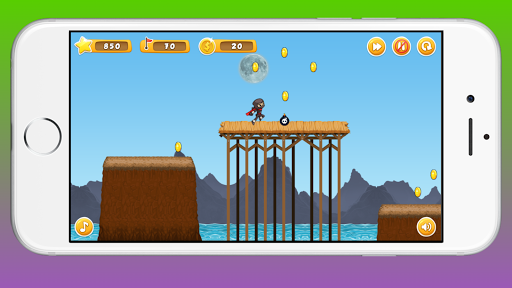 Amazing Ninja Running Game For You Play the running ninja game as a ninja character and try to dodge all those bombs and different obstacles Try not to jump into the water this game is very addictive arcade game it will keep u playing for hours.
