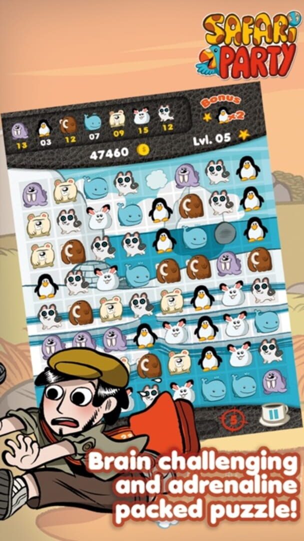 If you're a fan of puzzle games or looking for a game with a great quality-price-fun ratio, Safari Party is a real bargain. In the game, players need to strategically tap on or swap the animals to create larger groups, score points, and unlock secret achievements. Shake your device if you're stuck or look for bonuses such as rocks, clouds, and jokers to help you along the way.