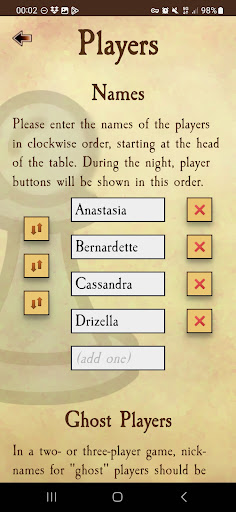 This app takes on the role of moderator, so that all human participants can be players. It also allows to connect to the game with multiple smartphones, so that players don't have to reach across the table to take a vote.