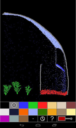 Experience a thrilling particle game with fast-paced action in this game. This game gives you the liberty to draw unique elements and observe as they interact in interesting ways. From starting a fire to cultivating a garden, it's all possible. Most of the elements can be set to either draw or emit by tapping the palette again. The interface is minimalistic, providing ample canvas space. Whenever you select an element, its name will appear along with basic instructions and descriptions when you tap the "?" button. This cost-free version offers 19 elements, of which 13 can be set to emit.
