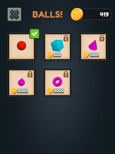 Complete each levels and get rewarded with Points for that. With the collected Points You will be able to buy new Ball Shapes.