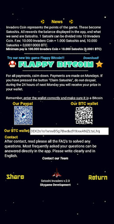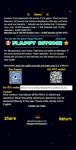 The first game you win bitcoins with! Eliminate enemies, earn points and those will automatically be converted to Bitcoin!