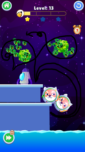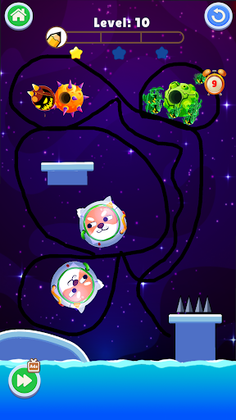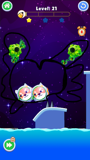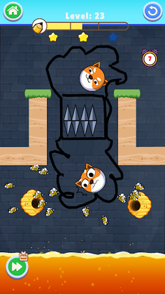 Hold your pencil tightly and do everything in your power to draw a shield that will protect our protagonist at all times. Always keep the laws of physics in mind, and prevent the dog from brushing against the sharp spikes of each level, the lava of a volcano or even do whatever it takes to prevent him from drowning in the deep ocean while the bees attack him. 50 exciting levels are waiting for you to enjoy a truly relaxing afternoon! But don't get complacent, as the difficulty will increase as the game progresses. Good luck...
