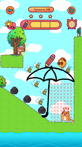 You draw lines with your finger to create a wall that protects Simba from bees and other dangers. You need to protect Simba with a painted wall from all dangers for a few seconds, hold out and you will win the game. Use your wits to save Simba the cat.