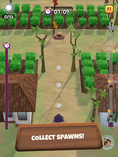 Power up by finding termites and collecting spawn. Purple Frog spawn is unusual, it’s white! Collect them for extra game time and remember the clock is ticking, you have Purple Frogs to save!