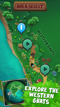 * Explore three unique nature environments in this fun frogger game: farmland, village, and forest areas of southwest India.